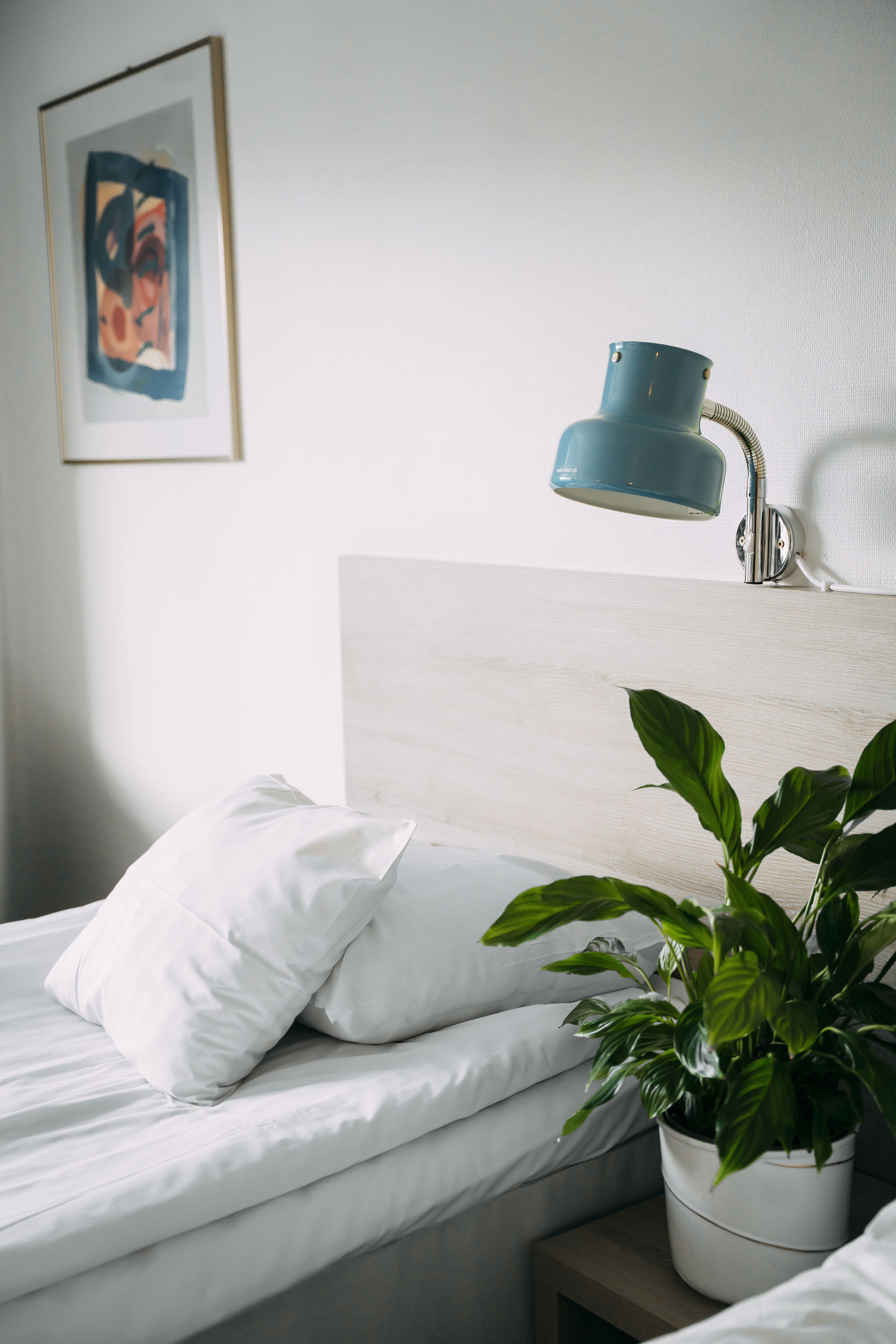 Our single rooms are large, 21 sqm with a 90cm bed! In the room there is a spacious closet, large desktop, 32 inch flat – TV, hairdryer, telephone, kettle with Tea and Coffee